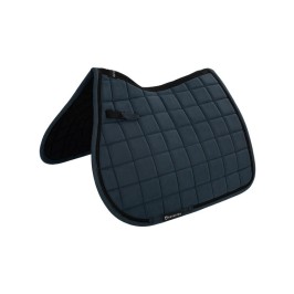 Polyester saddle pad with 300 g/m² polyfill and 6 mm foam padding, and honeycomb cotton lining. Small self-gripping straps and reinforced girth loops. This saddle pad may be used at shows or at the barn.
